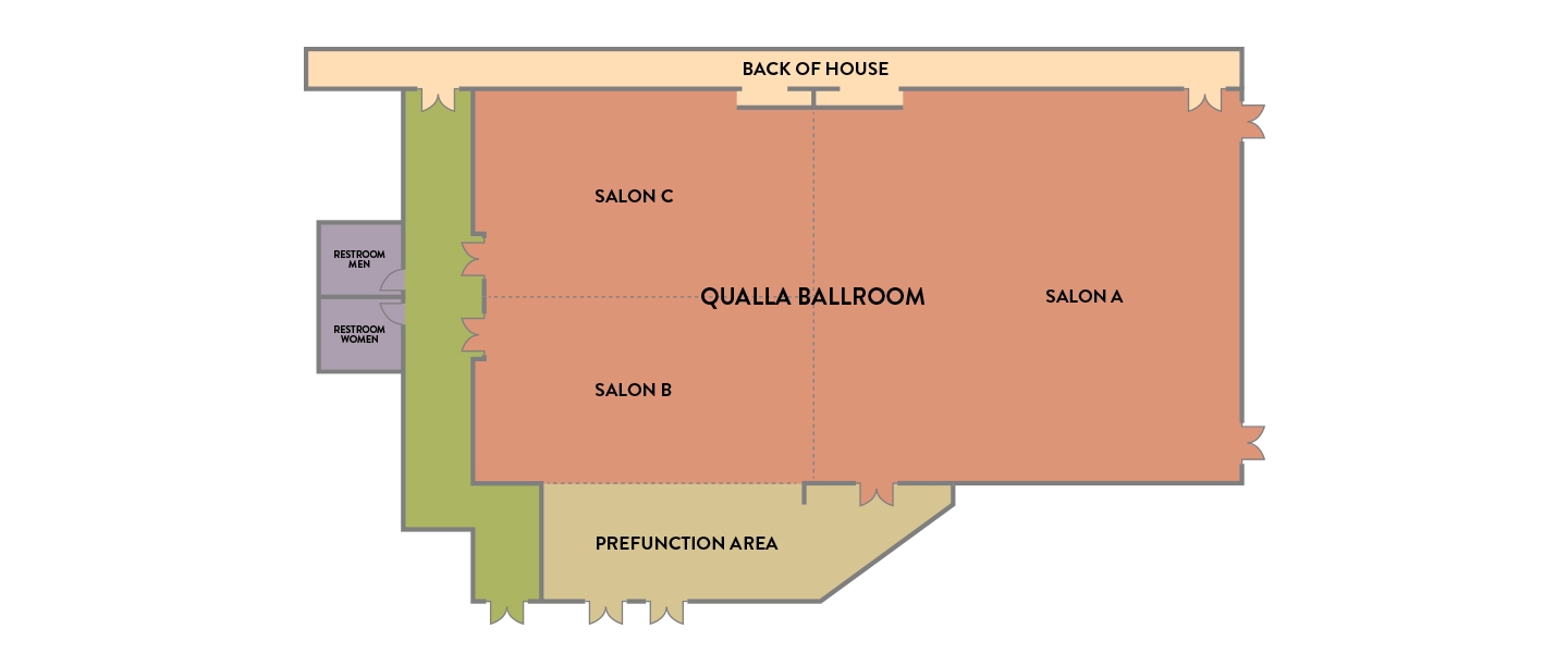 Bold and elegant, the Qualla Ballroom accommodates large gatherings with seamless style, featuring full AV support, refined finishes, and (5) different layout options.